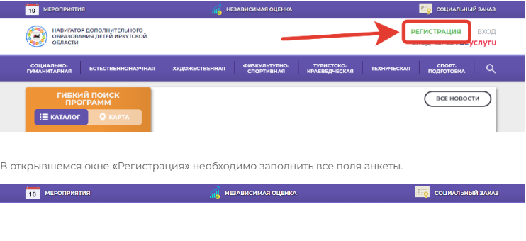 Чтобы зарегистрироваться в ИС «Навигатор» https://р38.навигатор.дети необходимо нажать на кнопку «Регистрация» в правом верхнем углу сайта.