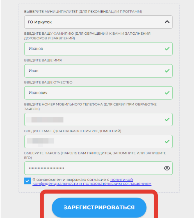 Далее следует ознакомиться с Пользовательским соглашением и политикой конфиденциальности, выразить своё согласие с документом, поставив отметку в виде галочки ✔️ в соответствующее поле (выразить согласие на обработку персональных данных).