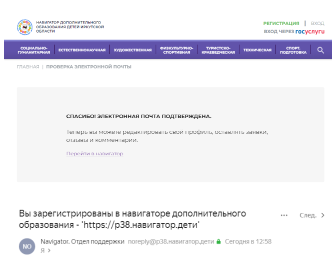 Поздравляем! Вы успешно зарегистрировались в Навигаторе!